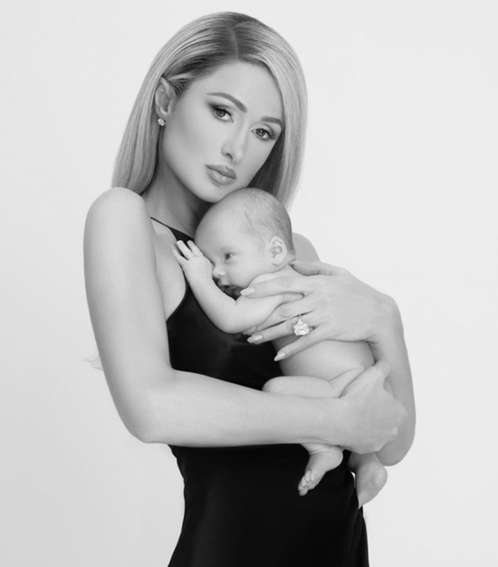 공개된 흑백 사진 속 힐튼은 아들 피닉스를 품에 안고 옅은 미소를 짓고 있다. 블랙 원피스를 입고 엄마의 자태를 뽐내고 있다.