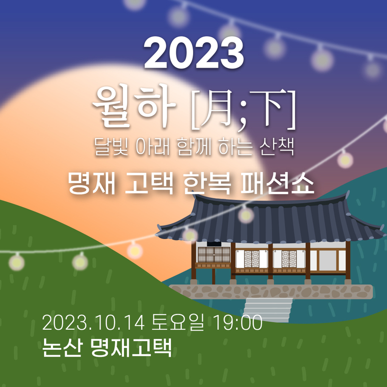 [라온신문 장슬기 기자] 오는 10월 14일 명재고택에서 한복 패션쇼 ‘월하 [月;下] - 달빛 아래 함께 하는 산책’ 가 열린다.