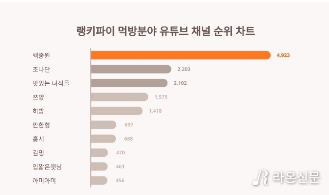 ![[출처: 랭키파이 먹방분야 유튜브 채널 트랜드 테이블]](http://www.raonnews.com/data/photos/20231251/art_17031246962379_5e2457.jpg)