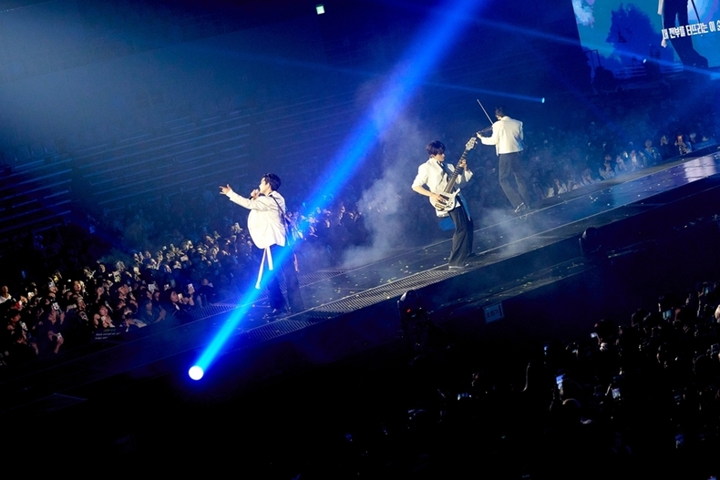 특히 '채워' 무대에서는 바이올린 활로 캔버스를 찢는 강렬한 신예찬의 퍼포먼스가 시선을 사로잡았다. 앞서 공개한 시그니처 로고 필름 속 이명 소리에서 모티브를 얻은 이 장면은 화가 빈센트 반 고흐의 내면과 곡 '채워'의 화자를 연결해 불안과 억압 속에서도 스스로의 세계를 깨부수고 다시 채워나가는 예술의 폭발적 순간을 생생히 그려내며 관객들에게 깊은 여운을 남겼다.