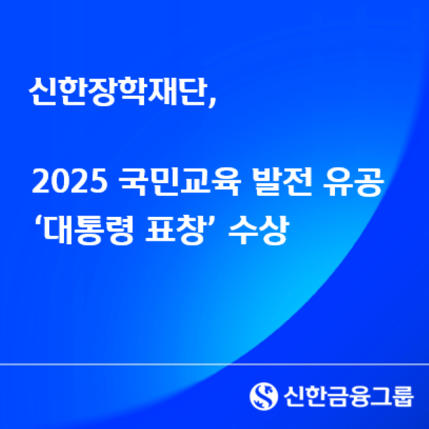 신한장학재단은 2025 국민교육 발전 유공' 정부포상에서 대통령 표창을 받았다고 12일 전했다.