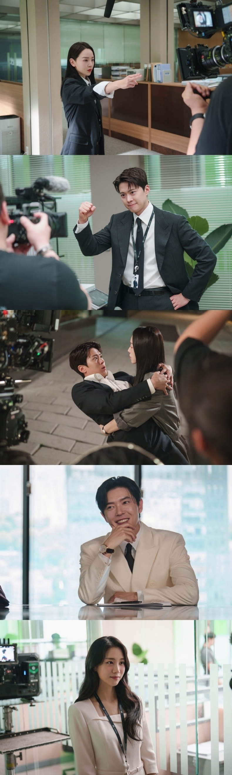 공개된 사진에는 은밀한 비밀을 간직한 감사실장 '주인아' 역 신혜선과 감사실 에이스 '노기준' 역 공명, '전재열' 총괄부회장 역 김재욱, '해무그룹'의 여신 '박아정' 역 홍화연의 촬영 현장이 담겨 있다.