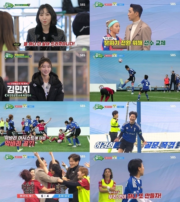 김민지는 “(경기 중에) 공 한번 나가면 못 잡을 때 있더라. 저 정도는 잡을 수 있을 거 같은데 싶었다”라며, “발로 하는 건 웬만하면 다 잘한다”라고 자신감을 드러냈다.