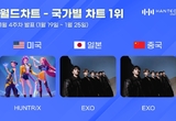 헌트릭스·엑소, 1월 4주 한터 국가별 차트 1위 차지