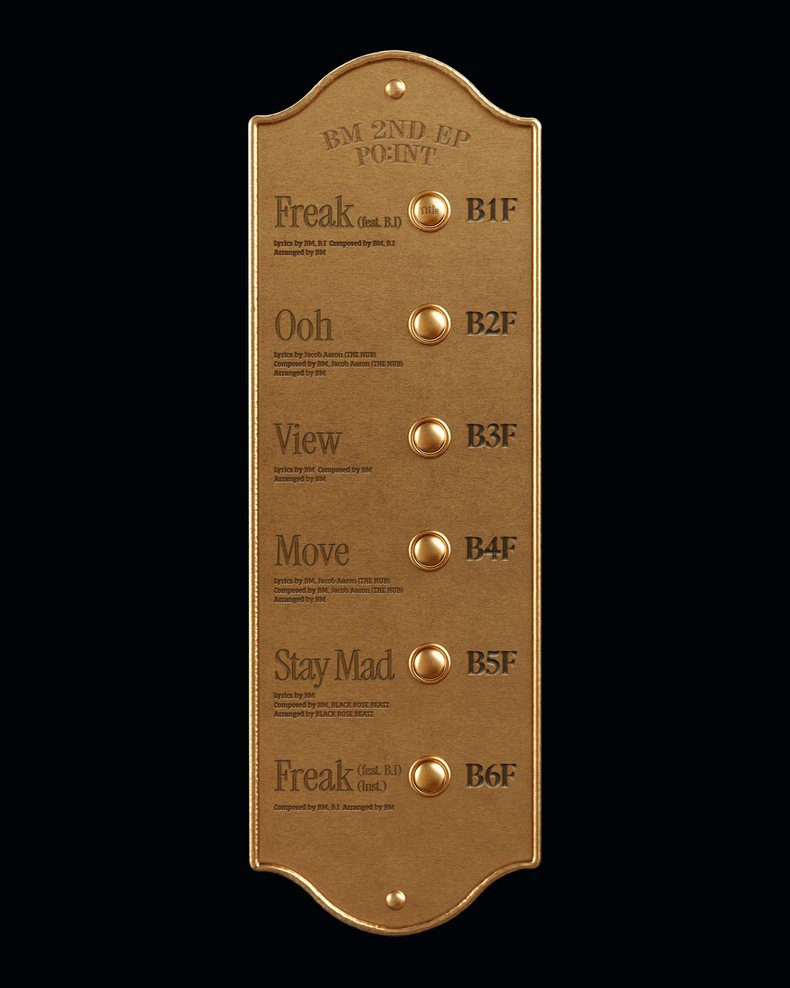 공개된 트랙리스트 이미지는 EP에 수록된 총 6곡이 엘리베이터 층수인 지하 1층부터 지하 6층까지 배치된 모습이다. 비엠은 층층이 쌓인 곡들처럼 각기 다른 매력으로 국내외 팬들과 만날 예정이다.