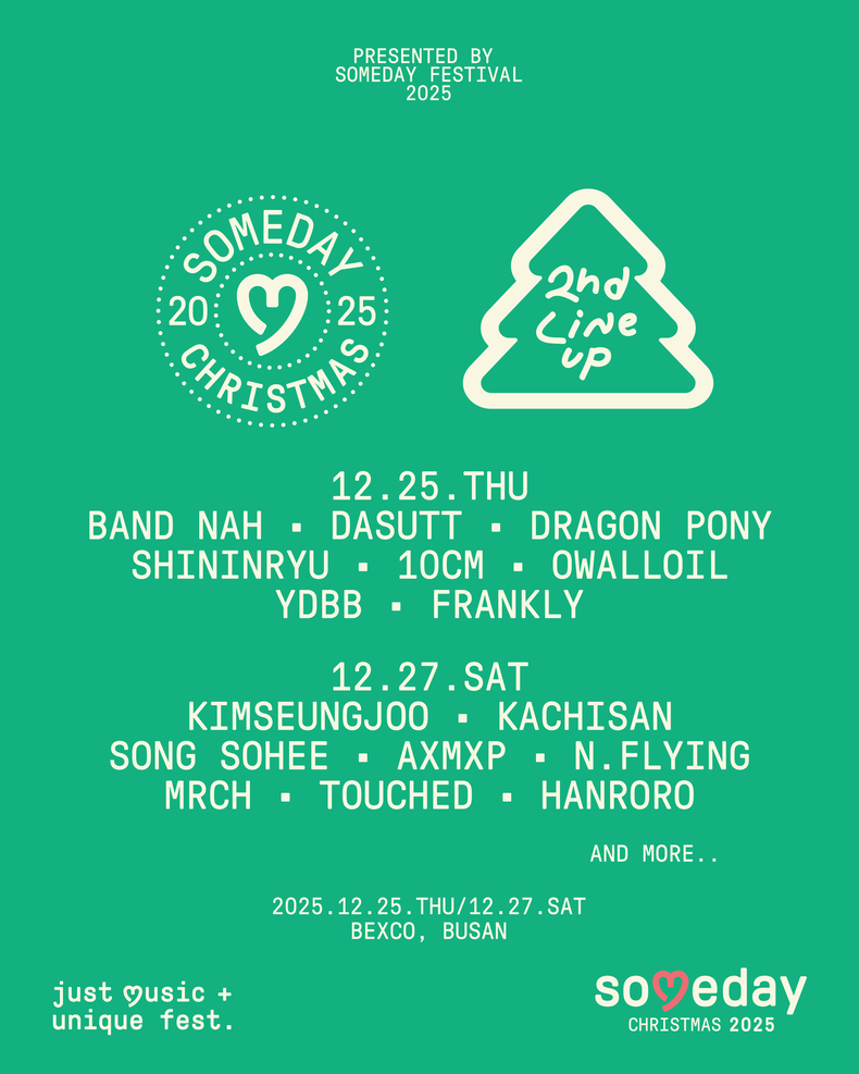 한편 ‘SOMEDAY CHRISTMAS 2025’ 일반 티켓은 22일 오후 6시부터 NOL티켓(인터파크), 티켓링크(네이버예약), 멜론티켓 등 주요 예매처를 통해 오픈된다.