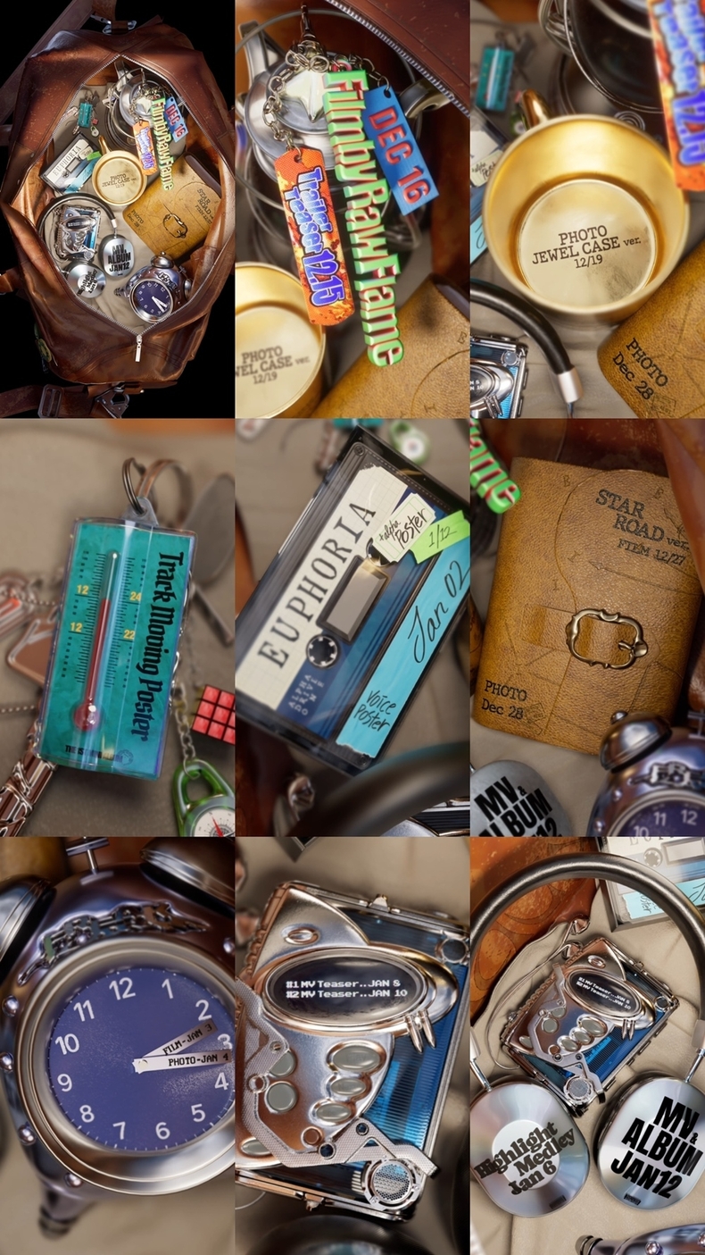공개된 스케줄러는 가방 속에 배치된 헤드셋, 테이프, 키링 등 상징적 오브제를 배경으로 ‘EUPHORIA’의 프로모션 일정을 담고 있어 시선을 끈다.