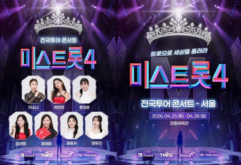 20일 제작사 쇼당이엔티에 따르면, '미스트롯4' 콘서트가 오는 25, 26일 서울 공연을 시작으로 전국투어의 포문을 연다.