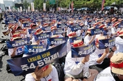 주요 시중은행 직원들이 속한 전국금융산업노동조합(금융노조)이 26일 서울 광화문 동화면세점 앞에서 총파업 결의대회를 열었다. 이번 총파업은 2022년 9월 이후 3년 만이다. 이들은 주 4.5일제 근무와 실질임금 3.9% 인상 등을 요구하고 있다. 경찰 비공식 추산 8천명이 모인 가운데, 세종대로에 연좌한 노조원들은 '총파업'이라 적힌 붉은 머리띠를 매고 '2025 총파업 승리 실질임금 인상 쟁취', '내일을 바꿀 주4.5일제' 등의 손팻말을 흔들었다. 김형선 금융노조위원장은 개회사에서 "대한민국에 주5일제 시대가 온 게 2011년"이라며 "그 역사의 시계를 다시 돌리기 위해 이 자리에 모였다"고 말했다. 그러면서 "이제 노동의 패러다임을 바꿀 시기가 됐다"며 "주 4.5일제를 쟁취하는 총파업을 선언한다"고 외쳤다. 무대에 오른 백지노 IM뱅크대구은행지부 위원장은 "비상식적 소비자의 민원은 늘고 있는데, 부담과 책임은 모두 우리에게 지라고 한다"며 "오늘 쟁의는 근로환경을 개선하고 가족과 사회를 굳건하게 만들기 위한 행위"라고 주장했다. 금융노조는 이날 결의문에서도 "은행과 금융지주들은 매년 사상 최대 실적을 기록하며 노동자의 희생 위에 자기 잇속만 챙겼지만