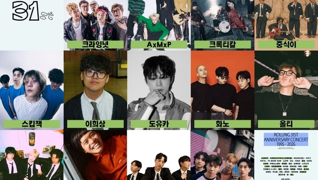홍대 음악의 성지로 불리는 롤링홀이 개관 31주년 기념공연의 1차 라인업 15팀을 공개했다. ‘롤링홀 31주년 기념공연’은 2026년 1월부터 5월까지 약 5개월 동안 진행되며 힙합, 발라드, R&B 등 장르의 경계를 넘나드는 라인업이 출연한다. 매달 새로운 주제와 콘셉트로 진행되며 롤링홀과 깊은 인연을 맺어온 아티스트들과 떠오르는 신예들이 함께 참여해 다채로운 무대를 선보일 예정이다. 1차 라인업에는 청량한 음색으로 사랑받는 보라미유, 섬세한 감성과 따뜻한 음색을 지닌 싱어송라이터 예빛, 작사·작곡·가창력의 균형으로 깊은 울림을 전하는 진민호, 규도, 기프트, 별은, 소각소각, 오아베, 이민정, 찬민, 캐치더영, 투모로우, 피에타, 할로우잰×다브다까지 총 15팀이 합류해 31주년 프로젝트의 서막을 알린다. 김천성 롤링홀 대표는 “1995년 개관 이후 31년 동안 변함없는 사랑을 보내주신 아티스트와 관객 여러분께 깊이 감사드리며, 앞으로도 관객, 아티스트, 스태프 모두가 함께 성장하고 꿈꿀 수 있는 건강한 공연 문화를 만들어가겠다”라고 밝혔다. 한편 올해 30주년을 맞은 롤링홀은 인천 파라다이스시티 일대에서 펼쳐진 ‘사운드플래닛페스티벌’을 성황리에 마