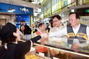 KB국민은행은 추석 명절을 앞두고 전통시장 사랑나눔 행사를 진행했다. KB국민은행은 1일 전통시장 활성화 및 소외 이웃 지원을 위해 ‘2025 추석맞이 전통시장 사랑나눔’ 행사를 가졌다고 전했다. KB국민은행은 지난 2011년부터 전통시장에서 식료품을 구입, 해당 식료품을 지역 사회 복지 시설 및 어려운 이웃에 전달하고 있다. 지금까지 156억원 상당의 식료품을 전통시장에서 구입, 23만2000여명의 어려운 이웃에 전달했다. 특히 올해는 ‘대한민국 새단장 주간’에 맞춰 KB국민은행 임직원들이 전통시장 일대에서 환경정화 활동을 펴기도 했다. 이환주 은행장은 이날 직접 서울 마포구 소재 망원시장을 찾아 직접 식료품을 구매했다. 이 행장은 “추석을 맞아 어려운 이웃과 따뜻한 마음을 나누고 전통시장에 활기를 불어넣을 수 있어 뜻깊다”며 “앞으로도 지역사회 경제 선순환에 기여하겠다고 말했다. 한편 KB국민은행은 최근 증가하고 있는 전자금융 사기 피해를 예방하기 위해 보이스피싱 예방 캠페인도 함께 진행했다. KB국민은행은 전국 70여개 전통시장에서 상인을 대상으로 보이스피싱 예방 안내장을 전달하며 보이스피싱 주요 수법과 사고 발생 시 신속한 대응 방법 등을 안내했다.