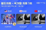그룹 헌트릭스(HUNTR/X)와 가수 연준(YEONJUN)이 한터 국가별 차트 정상에 올랐다. 실시간 음악차트인 한터차트는 14일 발표한 11월 2주 차(집계 기간 11월 3일~11월 9일) 미국, 일본, 중국 국가별 차트 TOP 30에 따르면 헌트릭스와 가수 연준이 한터 국가별 차트 각 부문 1위에 등극했다. 미국 부문에서는 헌트릭스의 'Golden(골든)'이 종합 지수 2만8528.31점으로 9주 연속 1위에 올랐다. 다음으로 연준의 'NO LABELS'(종합 지수 1만1245.10점)이 2위, 앤팀의 'Back to Life'(종합 지수 7985.16점)가 3위에 자리했다. 일본 부문에서는 연준의 'NO LABELS'가 종합 지수 1만5797.85점으로 1위에 올랐다. 다음으로 2위는 트레저의 'LOVE PULSE'(종합 지수 1만576.12점), 3위는 미연의 'MY, Lover'(종합 지수 7284.93점)이다. 중국 부문도 1위는 연준 'NO LABELS'(종합 지수 2만5727.82점)의 몫이었다. 이어 미연의 'MY, Lover'(종합 지수 1만5148.72점)가 2위, 세븐틴의 'HAPPY BURSTDAY'(종합 지수 1만3186.95점)가