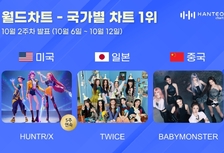 헌트릭스·트와이스·베이비몬스터, 한터 국가별 차트 1위 차지