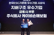 KB손해보험은 4일 서울 영등포구 한국거래소에서 열린 ‘2025년 한국ESG기준원(KCGS) 우수기업 시상식’에서 ‘지배구조 부문 우수기업’으로 선정됐다고 5일 밝혔다. 한국ESG기준원은 국내 대표 ESG 평가기관으로, 매년 ESG(환경·사회·지배구조) 경영활동이 우수한 기업을 선정해 시상을 진행한다. KB손해보험 측은 한국ESG기준원의 2025년 금융사 지배구조 평가에서 7년 연속 A등급을 획득하며 안정적인 지배구조를 기반으로 지속가능경영을 실천하는 금융사로 인정받았다고 전했다. 특히 올해 ▲이사회의 역할과 책임 ▲내부통제 ▲위험관리 등 주요 항목에서 높은 평가를 받아 지배구조의 선진성을 다시 한 번 입증받았다고 회사 측은 덧붙였다. KB손해보험 관계자는 “이번 수상은 KB손해보험의 건전하고 공정한 지배구조 체계 구축을 위한 노력이 대외적으로 인정받은 결과"라며 “앞으로도 ESG 경영에 앞장서며 이해관계자에게 더욱 신뢰받는 희망파트너가 될 수 있도록 최선을 다하겠다”고 말했다. KB손해보험은 앞서 ESG 평가기관인 서스틴베스트의 2025년 ESG 평가에서 2022년부터 4년 연속 최고등급인 ‘AA’를 획득했다. 이와 함께 보건복지부와 한국사회복지협의회가 공
