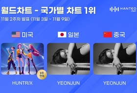 헌트릭스 '골든' 한터 국가별 차트 9주 연속 1위