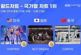 헌트릭스·NCT 드림·코르티스, 12월 3주 한터 국가별 차트 1위