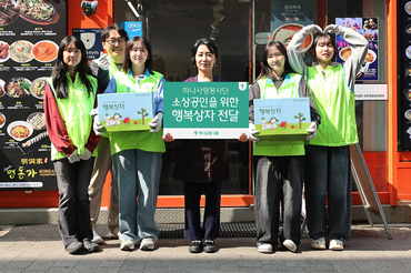 하나금융, 명동상인협의회에 종량제 봉투 등 행복상자 전달