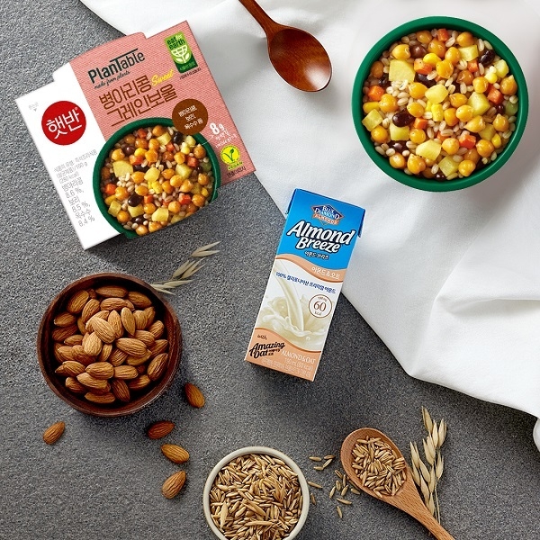 [라온신문 박은아 기자] 매일유업과 블루다이아몬드 그로워스사(이하 블루다이아몬드)가 합작해 선보인 식물성 음료 아몬드브리즈와 다양한 재료의 식물성 단백질이 그대로 담긴 곡물 샐러드인 CJ제일제당 ‘햇반 플랜테이블 그레인보울’이 협업해 건강한 식습관 형성을 독려하기 위해 #도전아브햇반 챌린지를 진행한다고 22일 밝혔다.