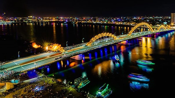 불꽃놀이는 두 차례가 진행되며, 한 차례당 9번씩 불을 뿜어낸다. 그다음은 현대 기술로 3회, 1회에 한 번씩 물을 뿜어내는 퍼포먼스 있다. 이러한 퍼포먼스는 용의 다리(Cầu Rồng)를 인상적으로 만들었고 매년 많은 관광객의 이목을 끌어들이는 다낭의 유명한 관광지가 됐다.