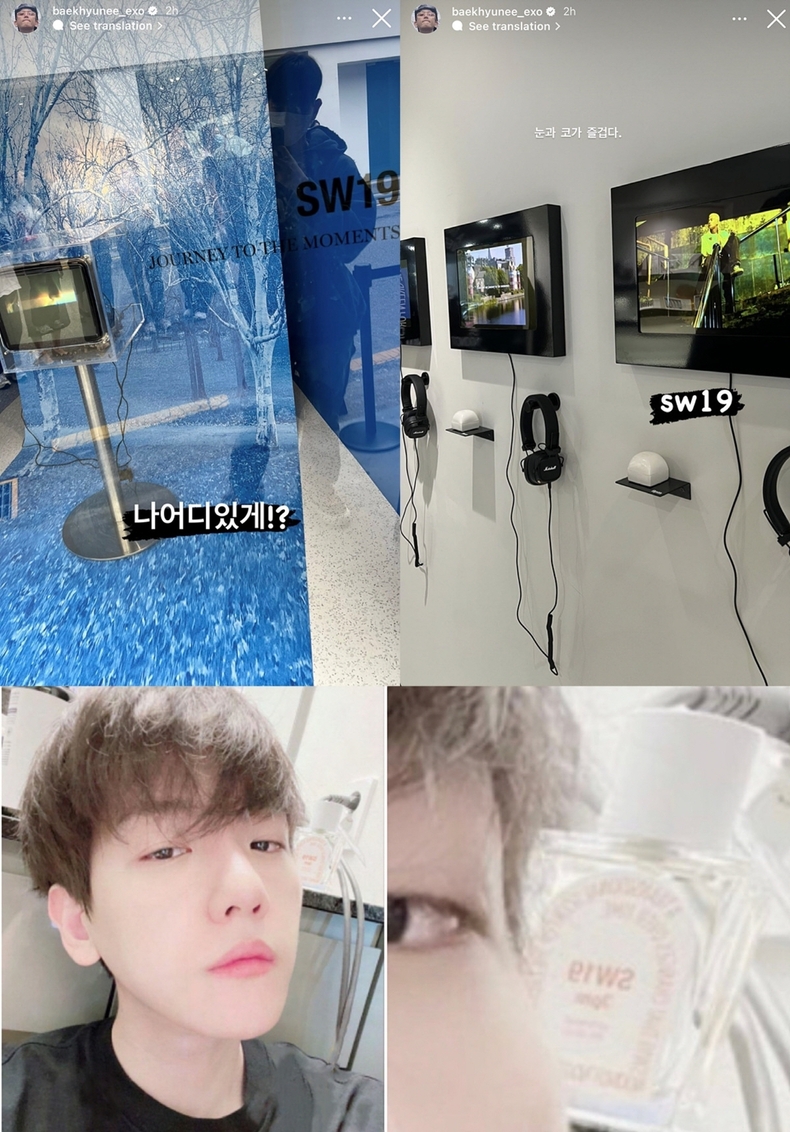 백현은 지난 20일 자신의 인스타그램에 “나어디있게?”, “눈과코가즐겁다”라는 글과 함께 스토리를 게재했다.