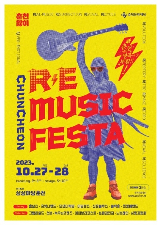 춘천문화재단은 10월 27일과 28일 KT&G상상마당 춘천 야외공연장에서 '2023춘천 R.E.뮤직 페스타'를 개최한다고 11일 밝혔다.