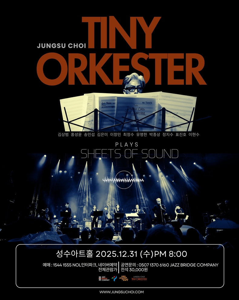 26일 공연주최사인 재즈브릿지컴퍼니에 따르면, '최정수 타이니 오케스터'는 국내에서 그동안 접하기 힘들었던 수준 높은 오케스트랄 재즈를 선보이며 해외 재즈 신에서 먼저 두각을 나타냈다.
