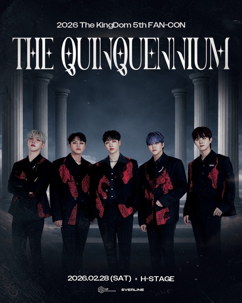 28일 소속사 GF엔터테인먼트에 따르면, 그룹 더킹덤(The KingDom: 단·아서·무진·루이·아이반·자한)은 이날 오후 2시와 5시 두 차례에 걸쳐 서울 마포구 H-STAGE에서 데뷔 5주년 기념 팬콘서트 'THE QUINQUENNIUM'(더 퀸퀘니움)을 열고 팬들과 만난다.