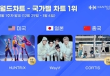헌트릭스·웨이션브이·코르티스, 1월 1주 한터 국가별 차트 1위