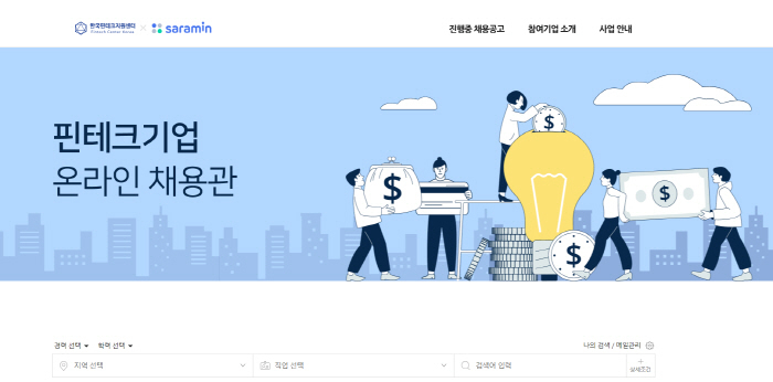‘핀테크기업 온라인 채용관’은 채용 포털 ‘사람인’ 전용 채용관 내 구축됐으며, 사전 수요조사를 통해 현재 100여 건의 핀테크기업 채용정보 제공을 시작했다.