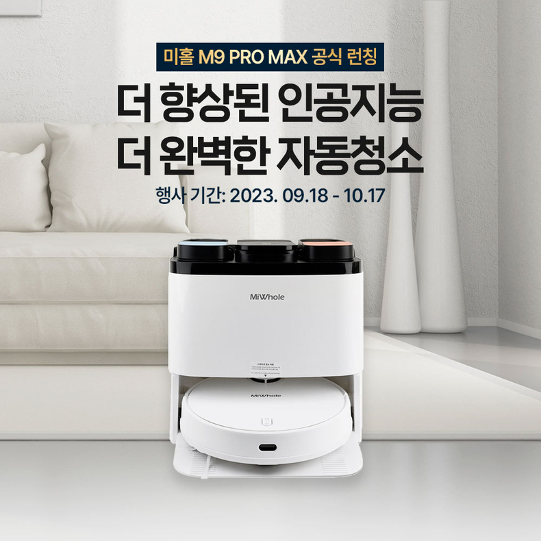 [라온신문 안광일 기자] 샤오미 생태계 브랜드 미홀(MiWhole)은 지난 18일 M9 PRO MAX 올인원 로봇청소기를 론칭했다고 밝혔다.