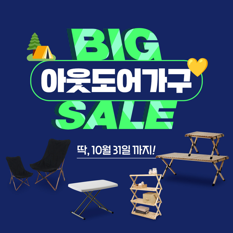 또한, 아웃도어 가구 인기 품목인 우드 롤 테이블, 폴딩 선반, 릴렉스 체어를 최대 67% 할인된 가격으로 구성해 가을 캠핑을 완벽하게 준비할 수 있도록 했다. 해당 품목은 선착순 50개 한정 특가로 판매된다.