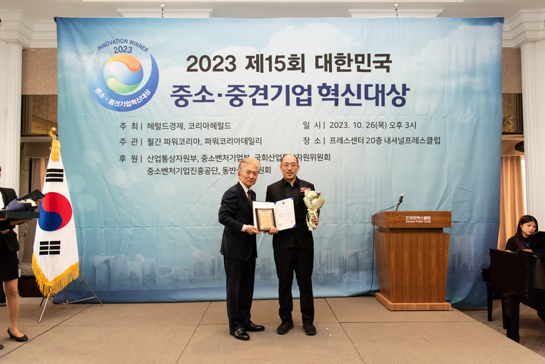 ‘대한민국 중소‧중견기업 혁신대상’은 헤럴드경제, 코리아헤럴드가 주최하고 월간파워코리아(발행인 백종원)가 주관하는 시상식으로 ㈜헤럴드가 차세대 성장 동력의 원천이자 선진한국 창조의 주역이 될 중소‧중견기업을 발굴, 격려하기 위해 제정됐다.