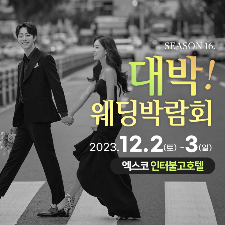 [라온신문 장슬기 기자] 대구 대박웨딩박람회 시즌16이 오는 12월 2일부터 3일까지 엑스코 인터불고호텔에서 진행된다.