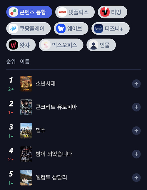 [라온신문 장슬기 기자] 배우 임시완의 쿠팡플레이 시리즈 ‘소년시대가’ OTT 통합검색 및 추천 플랫폼 키노라이츠 오늘의 통합 콘텐츠 랭킹 1위를 차지했다.