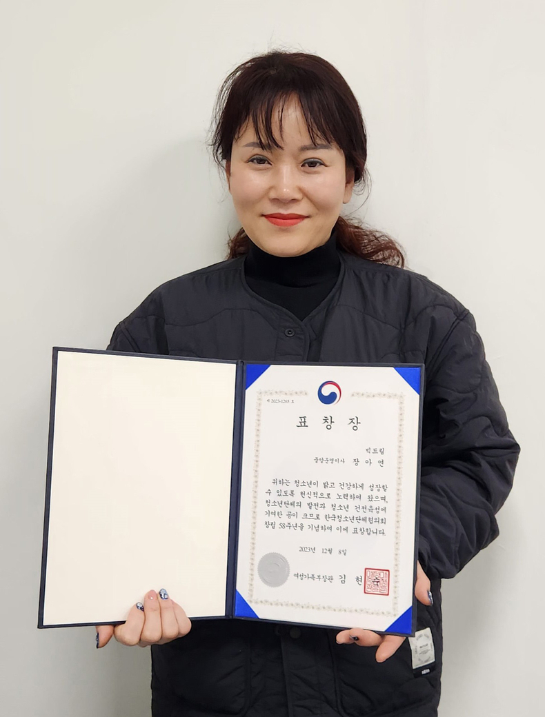 장아연 대표는 사단법인 빅드림의 중앙운영이사로서 청소년 단체의 발전과 청소년 건전 육성에 기여한 공을 인정받아 표창을 받는 것으로 알려졌으며, 19일 사단법인 빅드림을 통해 표창장을 전달받았다고 밝혔다.