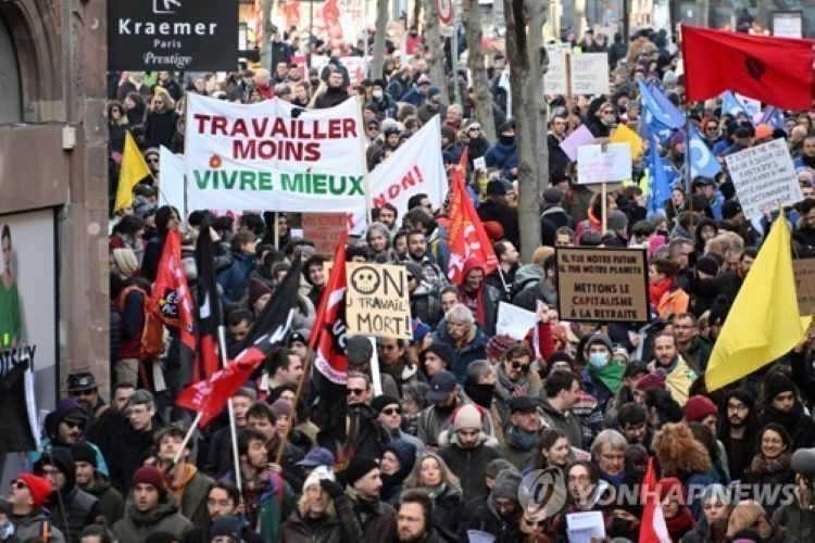 마크롱 대통령의 연금 개혁안은 정년을 기존 62세에서 2030년까지 점진적으로 64세로 연장하고, 연금을 100% 수령하기 위해 기여해야 하는 기간을 기존 42년에서 2027년까지 43년으로 늘렸다.