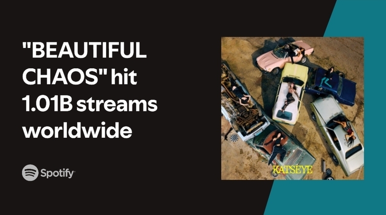 19일 하이브와 게펜 레코드에 따르면, 캣츠아이의 두 번째 EP ‘BEAUTIFUL CHAOS(뷰티풀 카오스)’에 담긴 5곡의 합산 누적 재생 수가 스포티파이에서 지난 14일 기준 10억 회를 돌파했다. 앨범이 발매된 지 141일 만이다.