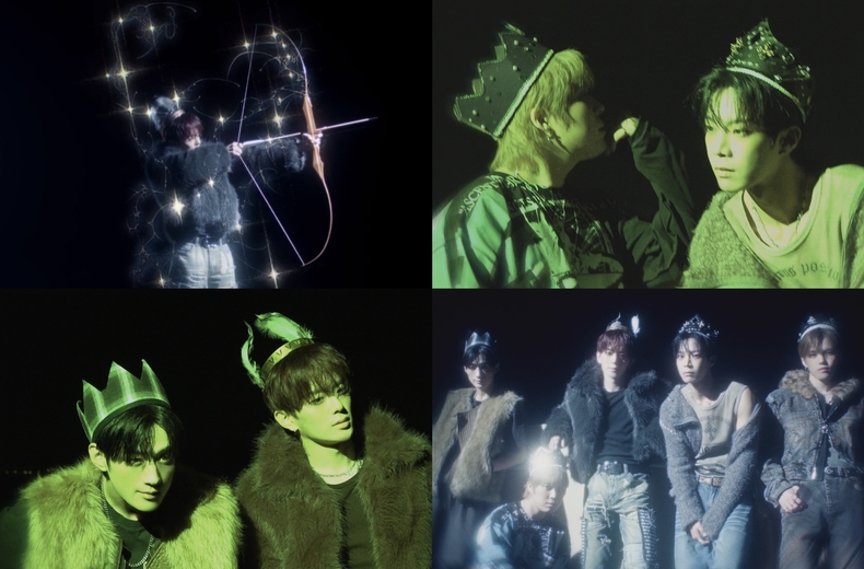 공개된 뮤직비디오 1차 티저는 이번 싱글 앨범의 타이틀곡이자 긴장감을 유발하는 ‘RED(Beggin’)’의 인트로 파트와 함께 암흑 속 활시위를 하늘 높이 당기는 멤버 강민의 모습으로 시작된다. 별자리 오리온을 연상시키는 신비로운 빛을 강민이 활시위에 담아 당기면 고대 왕관 장식을 쓴 베리베리의 모습이 이어지며 시선을 끌었다.
