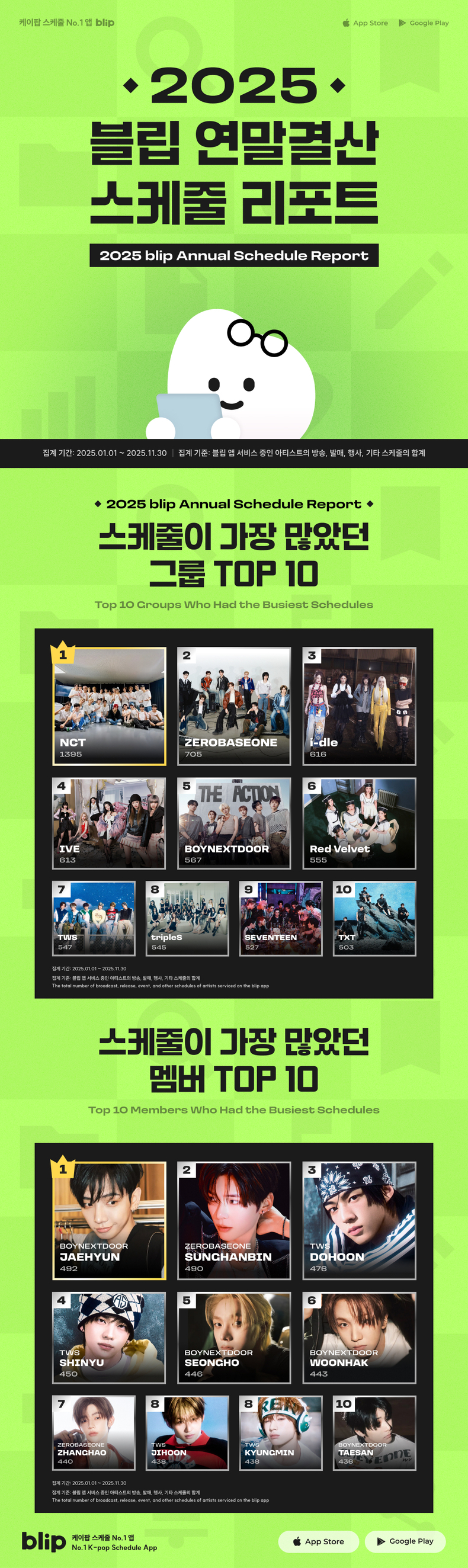 케이팝 스케줄 앱 ‘블립(blip)’이 2025 연말결산 ‘스케줄 리포트’를 공개했다.