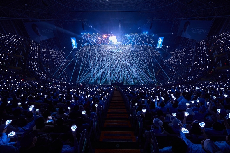가수 임영웅이 하늘빛 고척스카이돔을 완성하며 영웅시대와 ‘건행’(건강하고 행복하세요)을 약속했다.