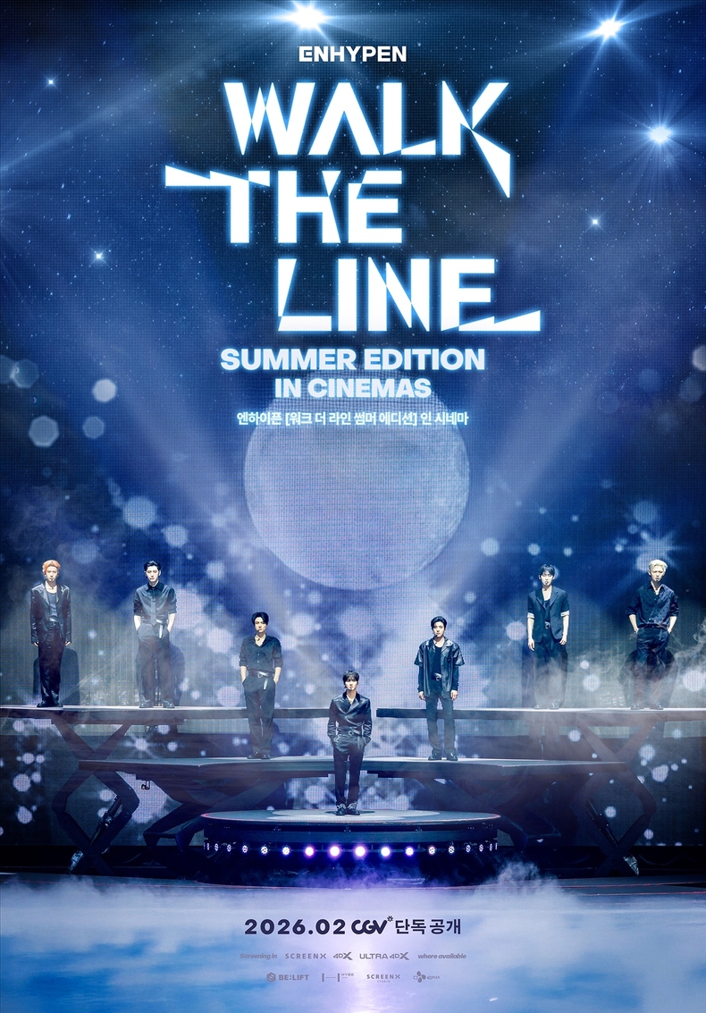 28일 소속사 빌리프랩에 따르면, 엔하이픈(정원, 희승, 제이, 제이크, 성훈, 선우, 니키)의 월드투어 ‘ENHYPEN WORLD TOUR ‘WALK THE LINE’ IN JAPAN -SUMMER EDITION-’의 실황을 담은 영화 ‘엔하이픈 [워크 더 라인 썸머 에디션] 인 시네마’가 내달 27일 국내 개봉한다. 이후 3월 5일부터 50개 국가/지역의 1500여개 상영관에서 순차적으로 만날 수 있다.