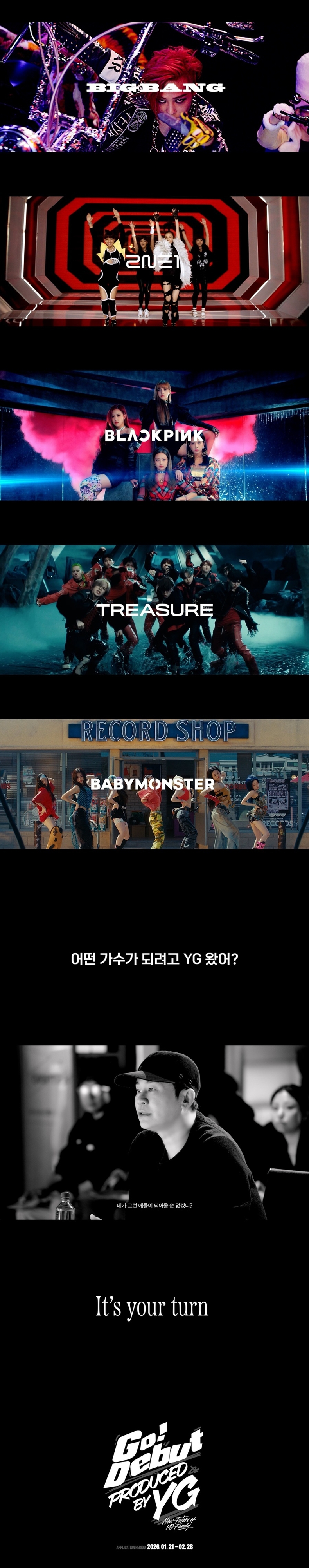 YG엔터테인먼트가 '2026 YG SPECIAL AUDITION : GO! DEBUT' 티저를 13일 추가 공개하며 글로벌 원석 발굴 프로젝트의 열기를 한층 끌어올렸다.