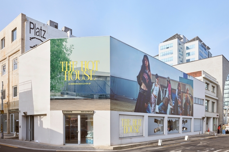 ‘LE SSERAFIM 2025 S/S POP UP - THE HOT HOUSE’는 지난해 3월 미니 5집 ‘HOT’의 발매를 기념해 개최했다. ‘사랑하는 것에 뜨겁게 뛰어드는 핫한 태도’라는 앨범 메시지를 오감으로 체험할 수 있도록 기획됐다. 녹아내린 로고와 그을린 블라인드 등 미니 5집 타이틀곡 ‘HOT’ 뮤직비디오 속 오브제와 멤버들의 일상 소품을 함께 배치했다. 단순한 공간 체험을 넘어 르세라핌의 브랜드 서사와 정체성을 시각적으로 표현했다. 또한 실제 뮤직비디오 세트를 재활용하여 지속 가능성을 강조했다.