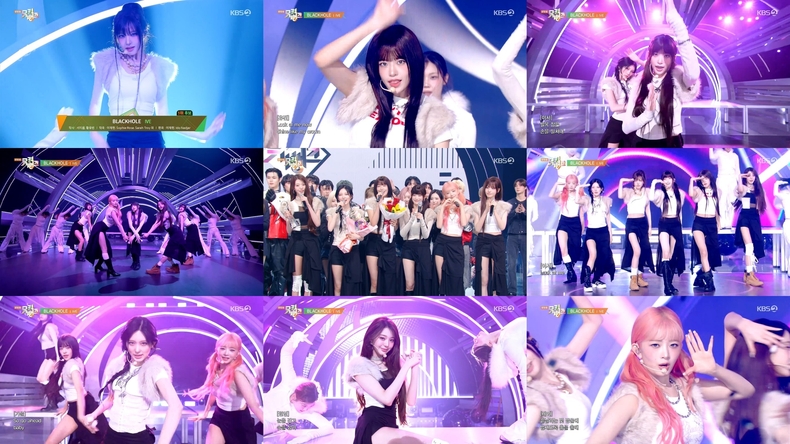 이날 방송에서 아이브는 정규 2집의 또 다른 타이틀곡 'BLACKHOLE(블랙홀)' 컴백 무대로 뮤직뱅크 무대에 올랐다. 퍼 크롭 재킷과 블랙 스커트를 매치한 스타일링으로 등장한 아이브는 특유의 당당하면서도 우아한 무드로 시선을 사로잡았다. 리즈의 몽환적인 음색으로 시작되는 인트로부터 후반부 시원하게 뻗는 안유진의 고음은 아이브의 흔들림 없는 라이브 실력을 증명하며 분위기를 단숨에 끌어올렸다. 여기에 긴 테이블을 활용한 군무는 곡명 '블랙홀'처럼 압도적인 스케일을 자랑했고, 후렴구 가사를 활용해 아이솔레이션과 손을 젓는 '룩앳미 춤'은 강렬한 중독성을 유발했다.