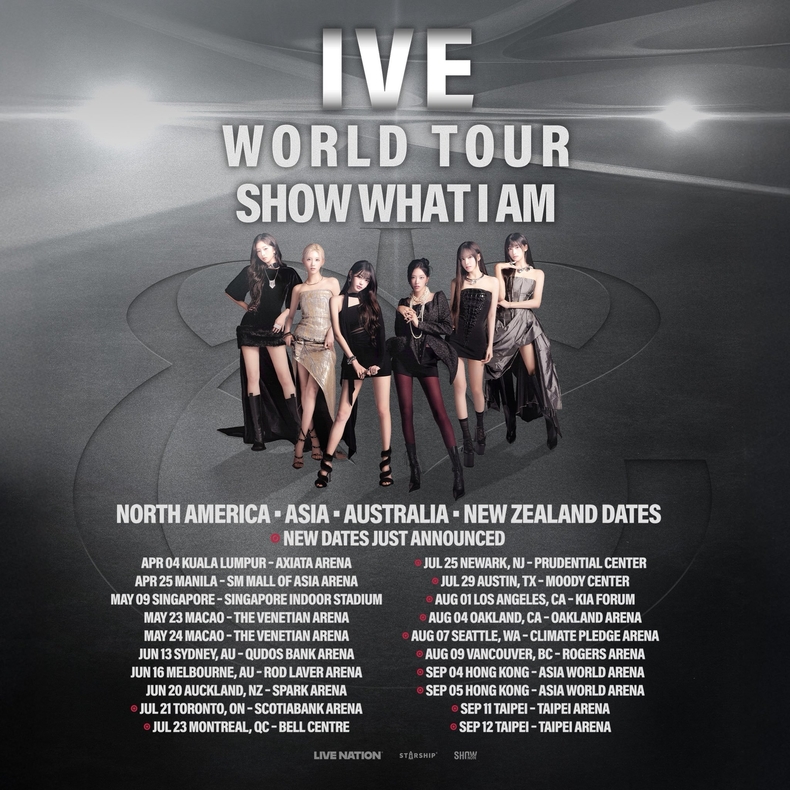 소속사 스타쉽엔터테인먼트는 지난 25일 아이브 공식 SNS를 통해 두 번째 월드 투어 '쇼 왓 아이 엠(SHOW WHAT I AM)'의 북미 및 아시아 추가 일정을 공개했다.