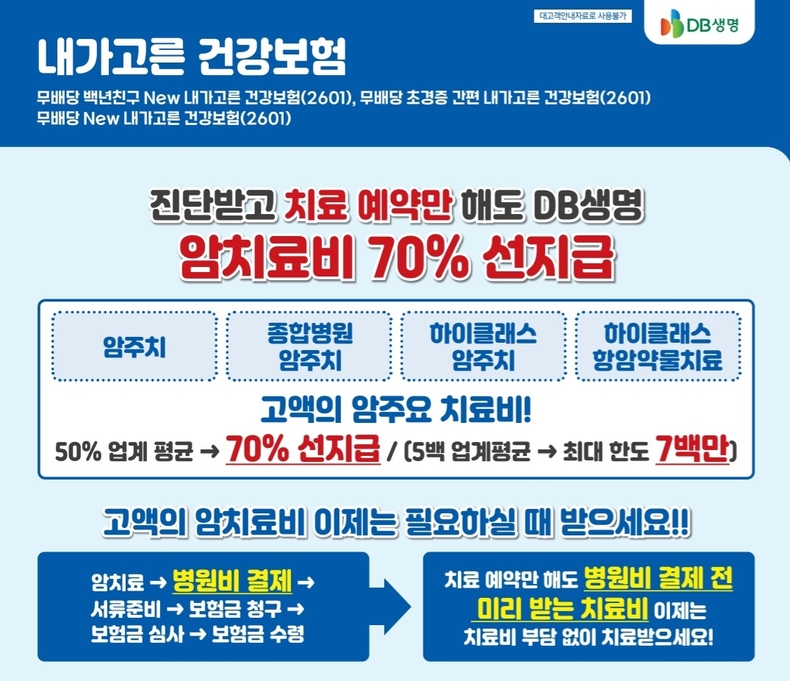 DB생명도 GA를 대상으로 '암치료 선지급' 서비스를 4월부터 시작했다. DB생명은 특히 암주요 치료비를 70%까지 지급한다. 이는 업계 평균 50%를 크게 웃도는 것으로 최대 700만원 내에서 암치료비를 먼저 지급받을 수 있도록 했다.
