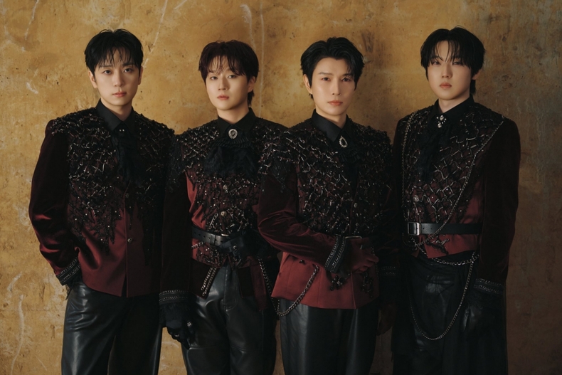 멤버들은 카리스마가 넘치는 눈빛과 상처 분장, 벨벳 수트, 주얼 브로치, 촘촘한 체인이 어우러진 스타일링으로 기품 있는 아우라를 뿜어냈다.