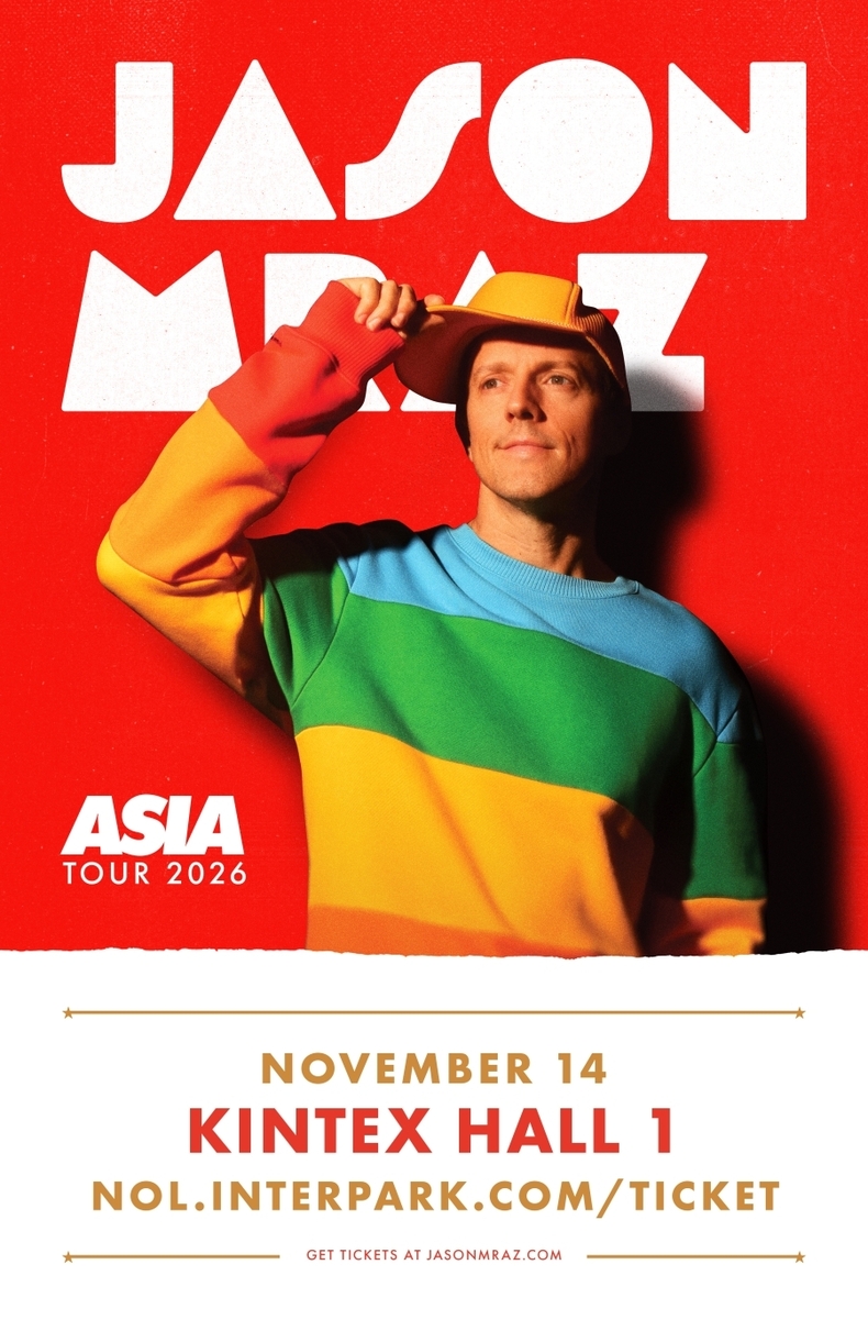 '2026 Jason Mraz 아시아투어 in 서울 (Jason Mraz Asia Tour 2026 in SEOUL)'이 오는 11월 14일 오후 7시 킨텍스 제 1전시장 1홀에서 개최된다.