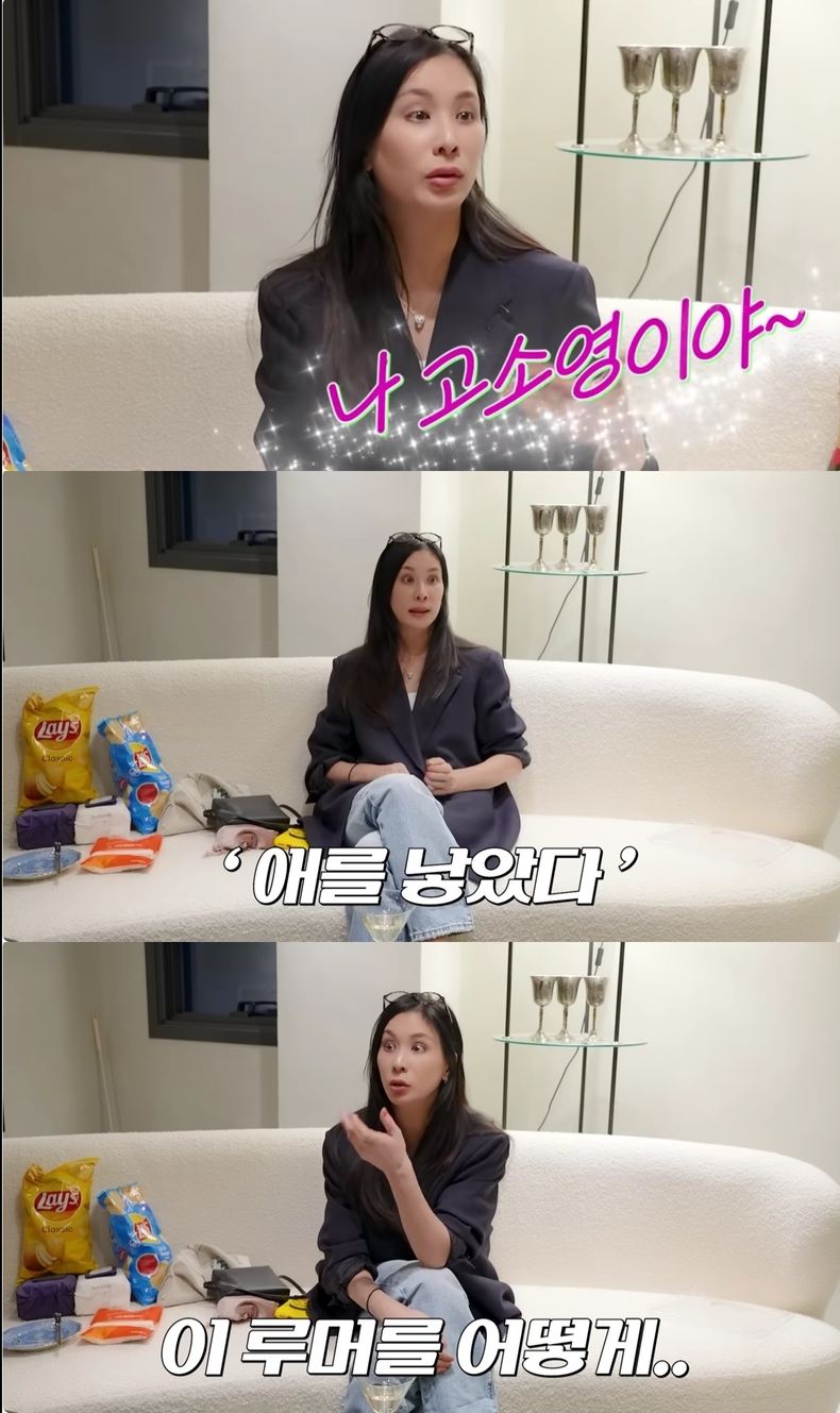 고소영은 "결혼 전에 애를 낳았다는 루머도 있었다. 열두 달 내내 새로운 광고가 나오는데, 내가 언제 배가 불러서 애를 낳지? 상식적으로 말이 안 돼서 무시했는데, 어느 날 한 아주머니가 나한테 '애 낳았는데 되게 날씬하다. 금방 살을 뺐나 봐' 하는 거다"라며 "루머를 없애지 않으면 시집도 못 가겠다, 아이가 태어나면 얘기해야 할 것 아닌가 해서 싹 다 고소했다. 치욕스러운 느낌이었다"라고 말했다.