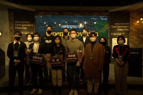 또한 서울창업허브 성수와 대, 중견기업 5개사(교보생명, 교원, 대교, GS리테일, SK텔레콤)는 오픈 이노베이션을 추진해왔다. 지난 11월 15일, 2기로 선발된 11개사 스타트업들은 대, 중견기업과 함께 추진해 온 사업화 내용을 투자사, 협력기업 및 ESG에 관심을 두고 있는 대중 약 100여명에게 발표하는 ‘임팩트 다이브 2022, 오픈 이노베이션 데모데이’를 성황리에 종료했다. 이번 데모데이에는 국내 ESG 분야 투자자 및 전문가 5인이 심사에 참여했으며, 심사 결과 ▲대상 필로토, ▲최우수상 딥비전스 ▲우수상 리브라이블리가 수상했다.